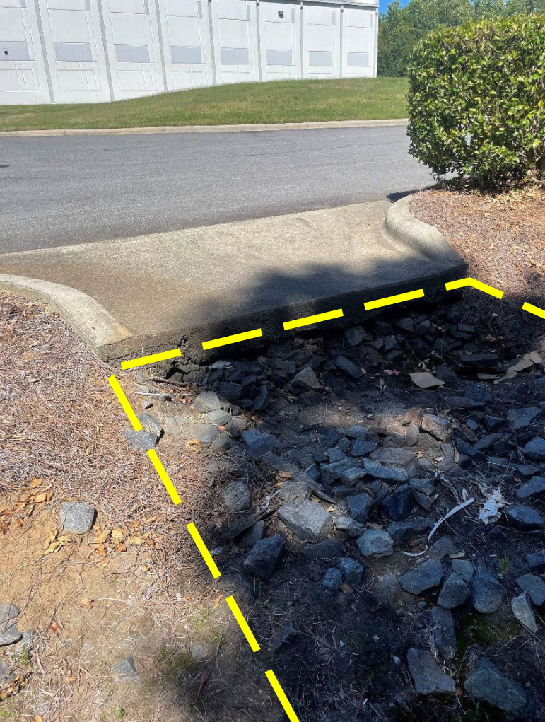 Another serious concern was a lack of a clear foot path to the control structure, which is essential for regular maintenance and inspections. Without proper access, inspection and maintenance are hindered, creating a safety hazard and compliance issues under local stormwater management standards. The structure must remain visible and accessible at all times to ensure the system functions correctly and can be serviced when needed.