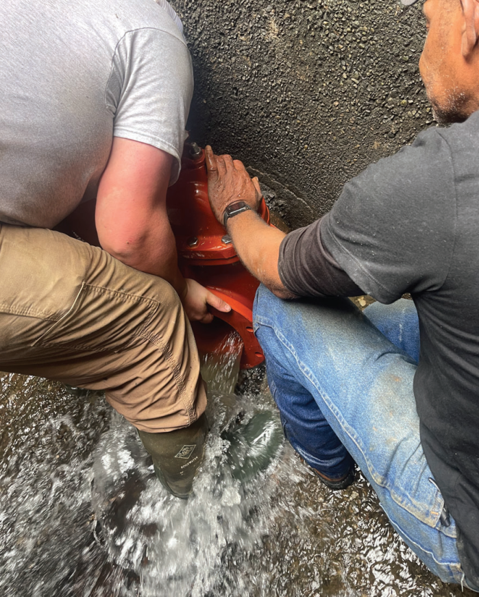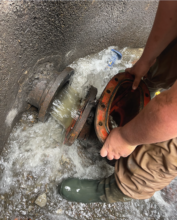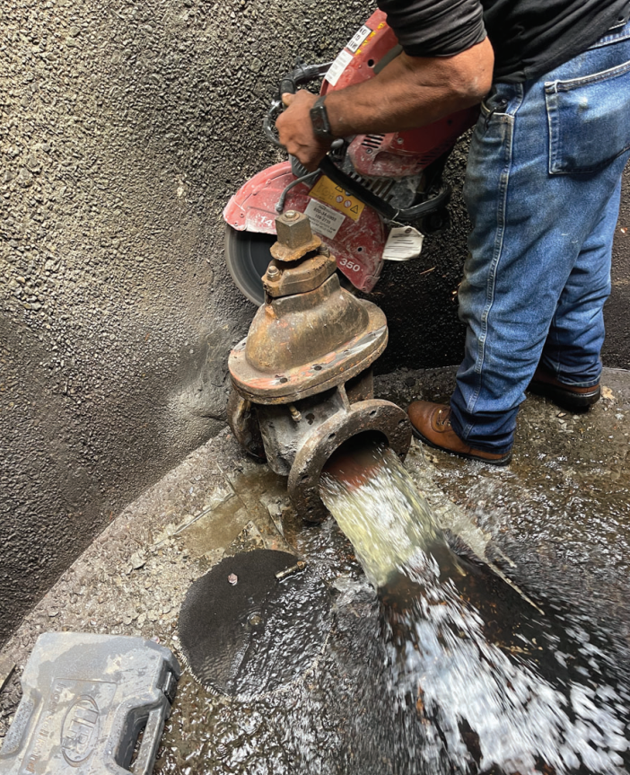 To begin the project, an 8-inch plug was inserted into the system to temporarily block the flow of water, allowing for safe removal and replacement of the faulty valve.